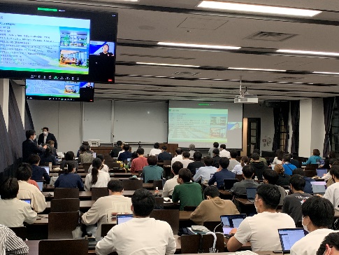 最後に、パネルディスカッションにも参加された所先生より閉会のあいさつがあり、シンポジウムは盛況に終わりました。雨天であったにもかかわらず、多くの学生・教職員が参加してくださいました。また、オンラインでも127名の参加があり、カーボンニュートラルに対する注目の高さがうかがえました。